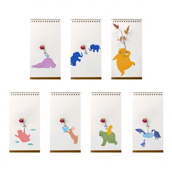De Flip Vase bestaat in verschillende uitvoeringen. Iedere versie heeft pentekeningen in een bepaald thema. De Flip Vase Karakter heeft grappige tekeningen van dieren, als een karakter in een kinderboek.