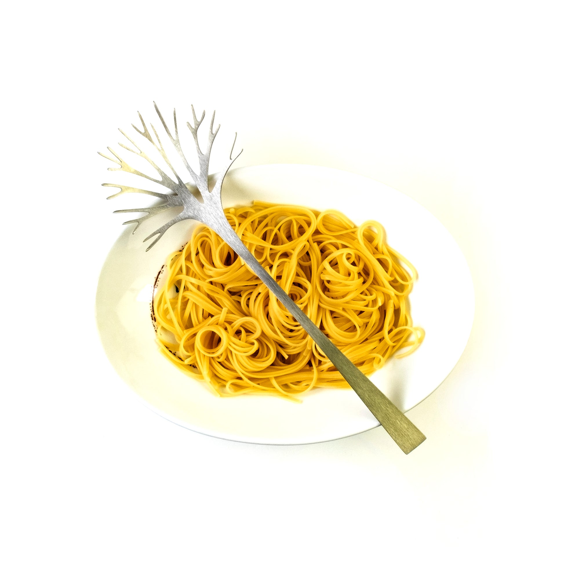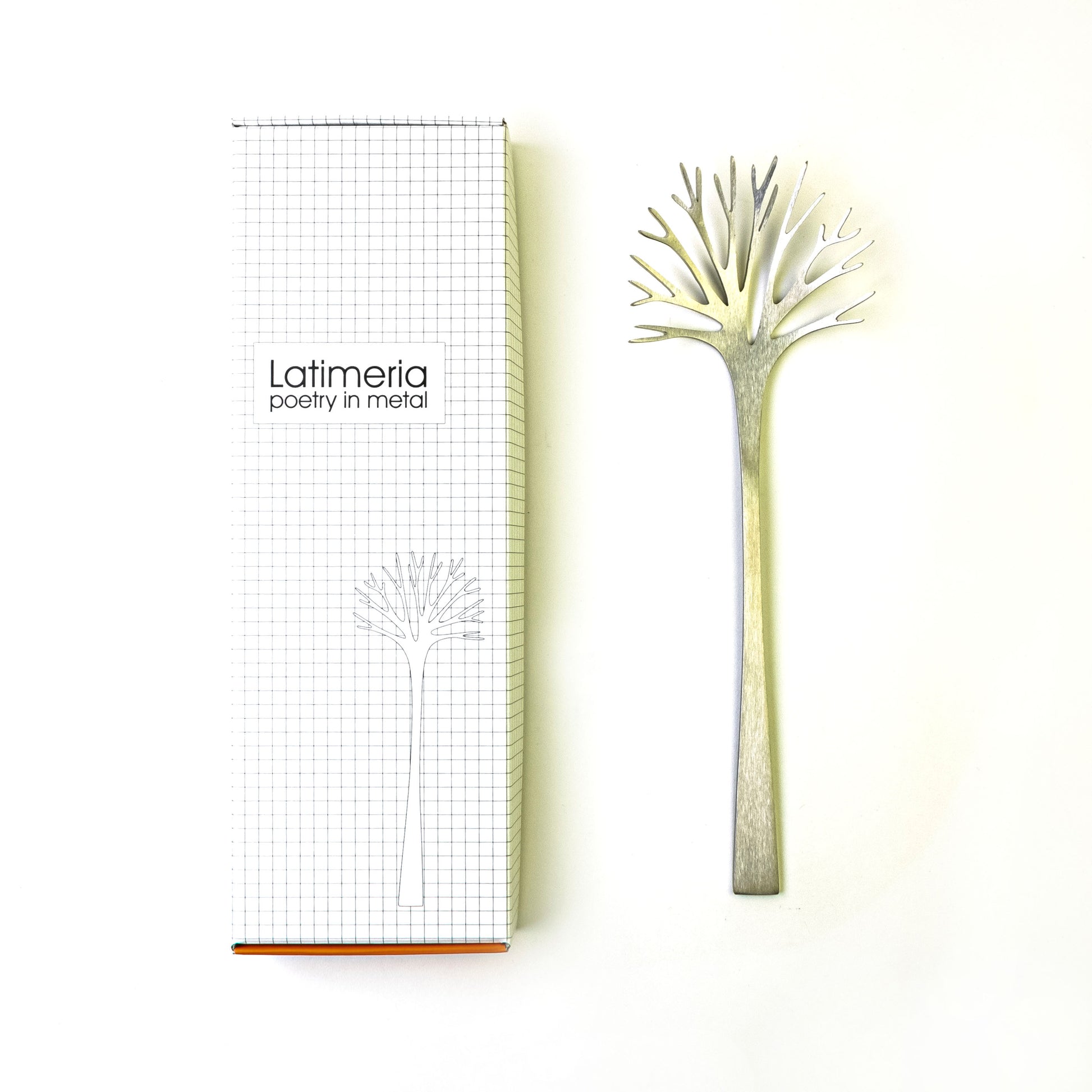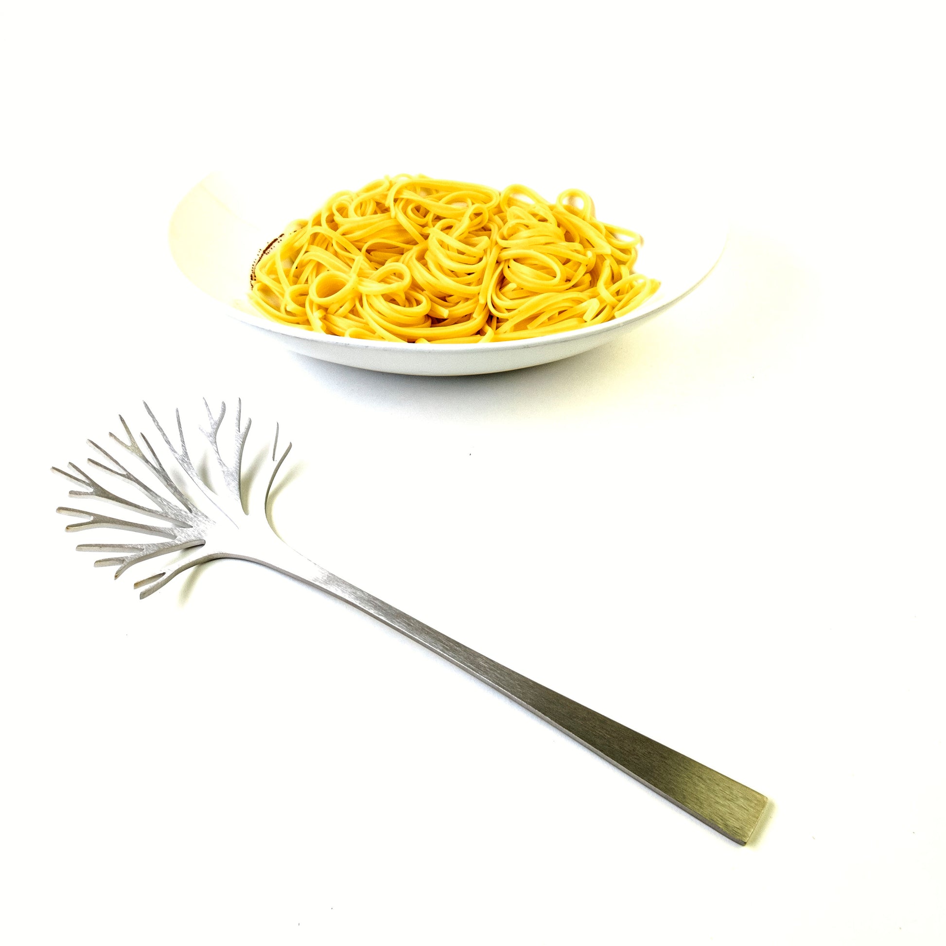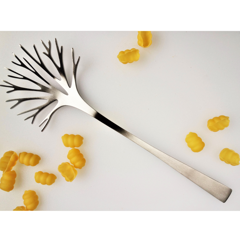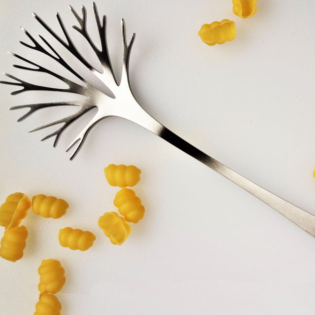 Pasta server van het Finse designmerk Latimeria, geinspireerd op een winterse boom zonder bladeren. Alle producten van latimeria zijn gemaakt van hoogwaardig staal in twee soorten: brushed en velvet steel.