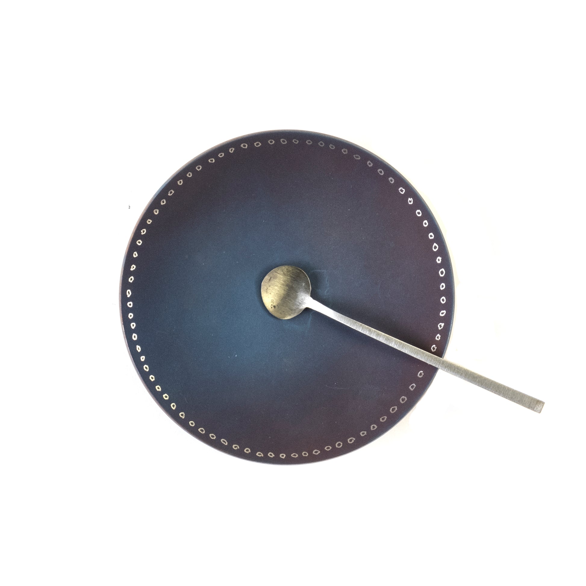 Salt set van het Finse designmerk Latimeria-poetry in metal. Een prachtig schaaltje met lepeltje, gemaakt van hoogwaardig staal, om zout op tafel te presenteren. Met zorg voor detail en afwerking gemaakt in de studio van Latimeria op het Finse platteland.